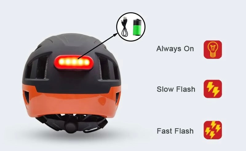 Meie elektritõukeratta kiiver on varustatud USB-laetava LED-tagatulega, millel on kolm režiimi: pidev, kiire vilkumine ja aeglane vilkumine. Vajalik on tulega elektrirattakiiver, mis aitab taga sõitjatel selgelt suunda märgata ja autot hoiatada.