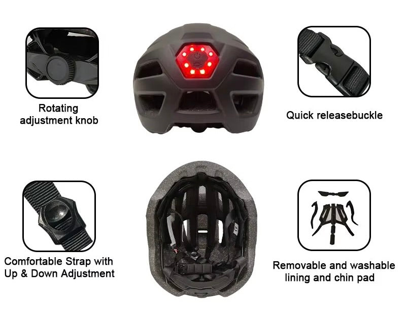 LED-valgustus: Kiivri tagaküljel on sisseehitatud LED-valgus, mis pakub täiendavat nähtavust ja ohutust hämaras valguses.
